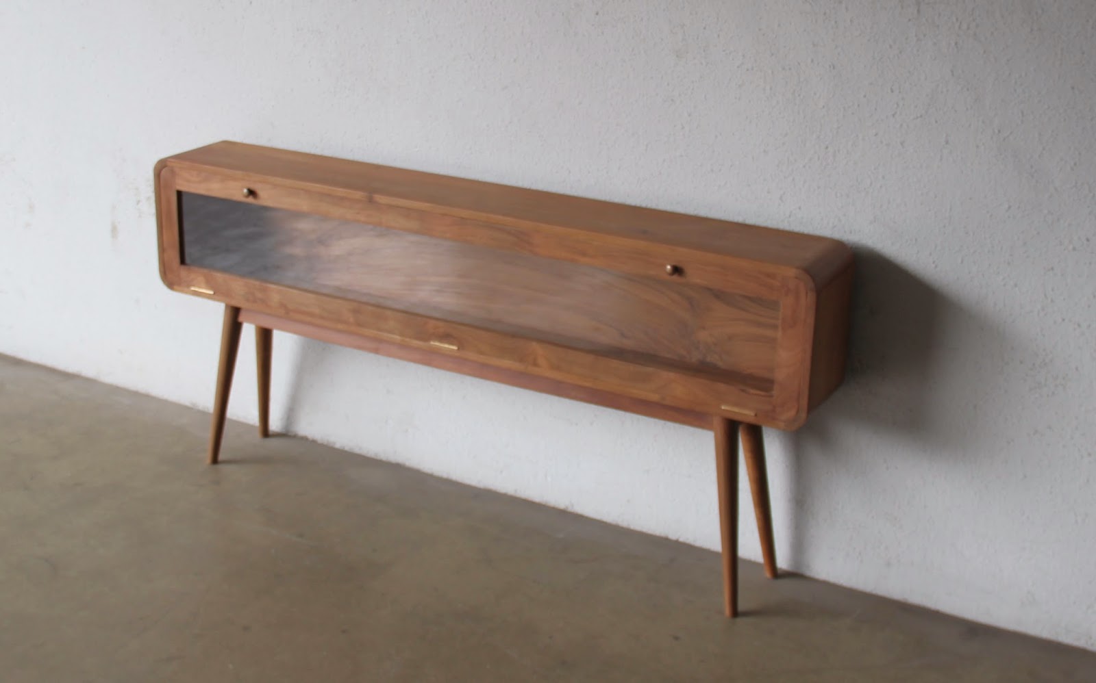 A reinterpretation of the midcentury design cabinet cum open shelf.